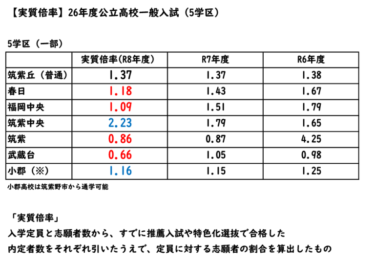 実質倍率から見る福岡県公立高校一般入試の変化